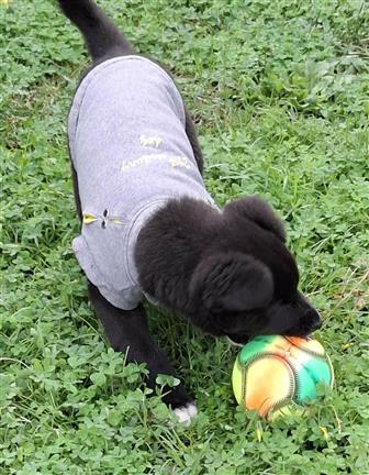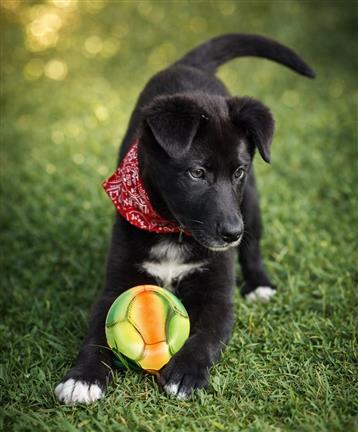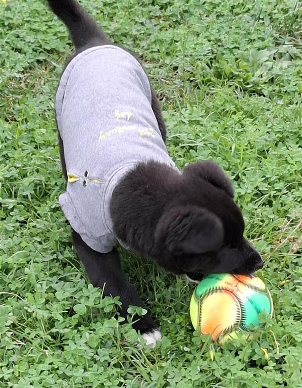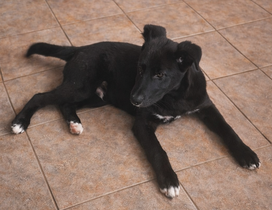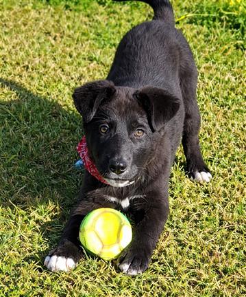 Loupo is een rustige pup. Hij speelt graag met de andere honden in de opvang.