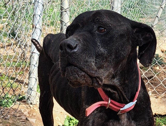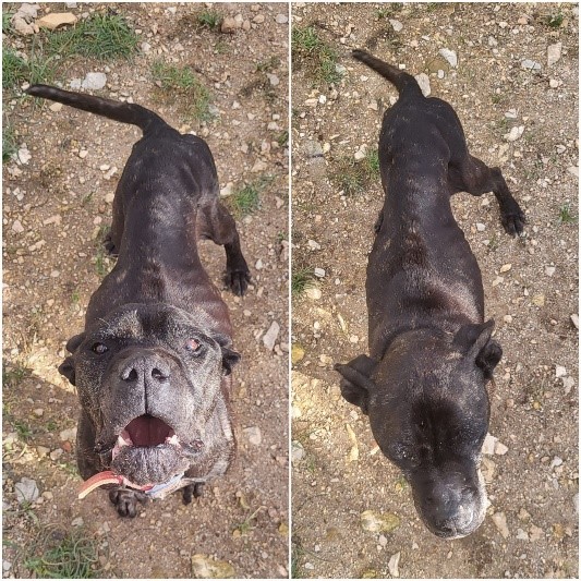 niet aan. Ze is erg zwak en voor een cane corso ook wel best op leeftijd. Ze is