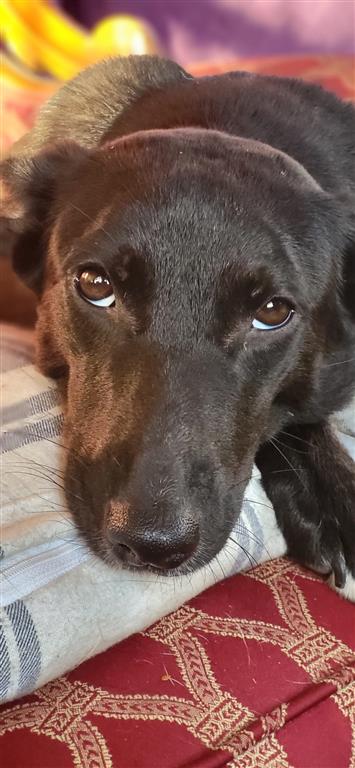huis bij de shelter en is overdag veel buiten met de andere honden. Ze heeft