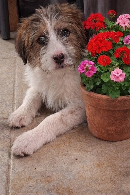 Molly liep op een regenachtige dag in een tuin, ze was erg hongerig en op zoek naar eten. Omdat ze heel vriendelijk naar de eigenaar van de tuin was dacht ze dat dit pupje verdwaald was. Daarom plaatste ze Molly op social media maar er kwam geen enkele reactie van een baasje.Vervolgens heeft onze contactpersoon aldaar, Molly in huis opgenomen waar ze bij andere puppy’s mag opgroeien.