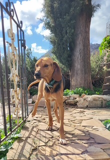 rent heerlijk rond en wil met iedereen spelen, maar hij kan ook heel rustig in