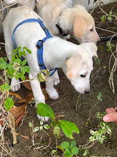 Met enige moeite lukte het om hun vertrouwen te winnen en lieten de pups zich toen ze ongeveer 10 weken waren vangen. Er zijn 2 blonde pups (crème) en 2 bruine pups, het zijn allemaal teefjes. De blonde pups zitten nu bij een gastgezin met 2 volwassen Labradors en worden ook al wat zindelijk. De bruine pups zitten bij een gastgezin met twee kleine kinderen. De kinderen wandelen met de pups en de pups rijden mee in de wandelwagen, bij de kinderen op schoot. Het is fijn dat ze al zo goed aan kinderen gewend zijn. Het valt op dat alle pups vriendelijk zijn en zich snel aanpassen aan de nieuwe situatie. Ze worden snel tam, alle pups zitten bij kinderen op schoot. De beide gastgezinnen zijn dol op de pups en voeden ze ook al wat op. Dus mogelijk zijn ze al zindelijk als ze half maart komen, en lopen ze al aan de lijn.
