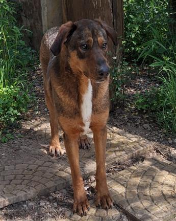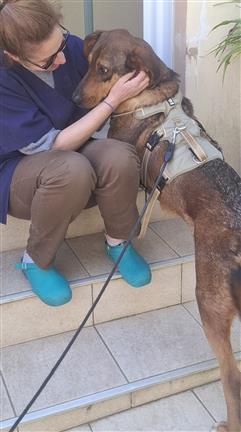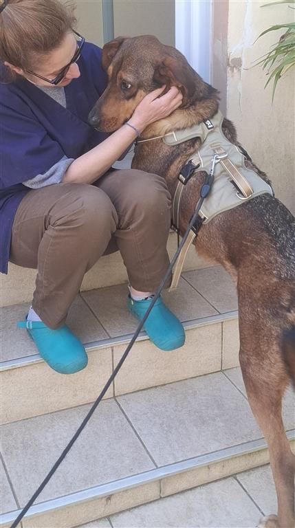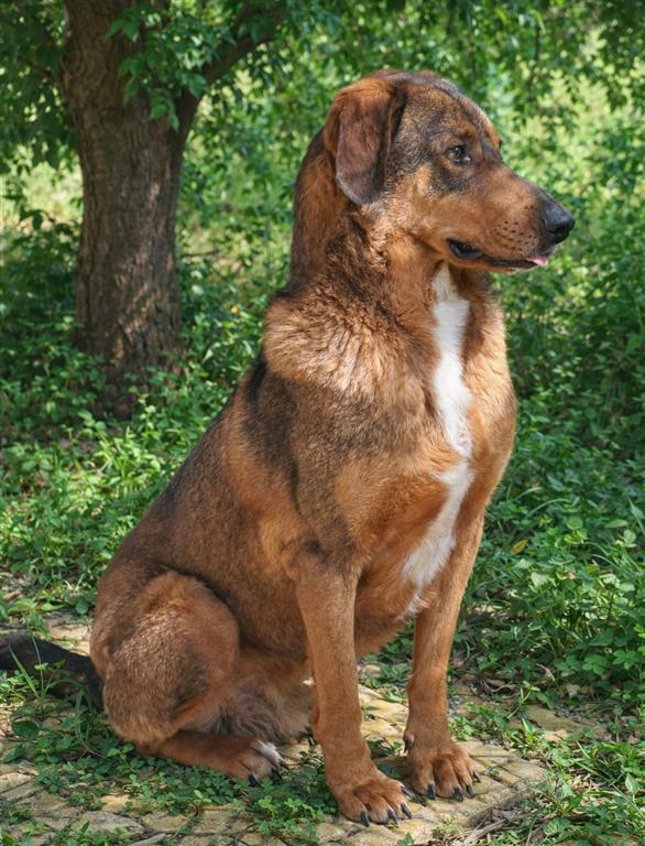 Hij heeft eerst als pup in huis gewoond bij de dierenbeschermer en zit nu weer in de kleine opvang.