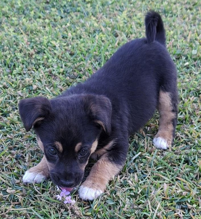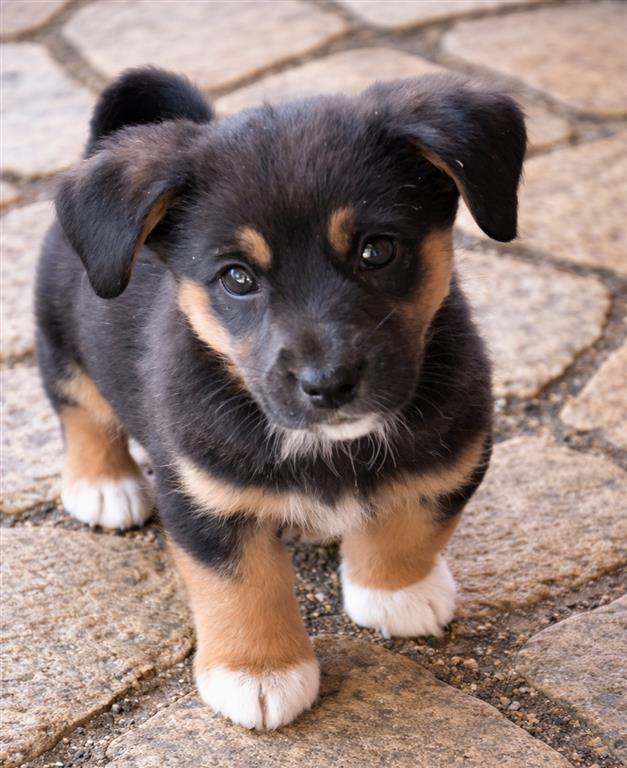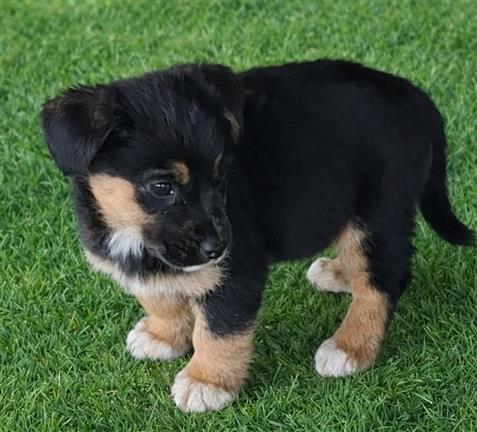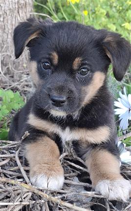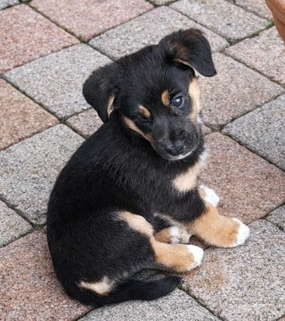 Een klein hondje van een herder kreeg 6 puppy’s. De herder gaf 1 puppy weg en zocht voor de andere puppy’s ook een nieuw adres.