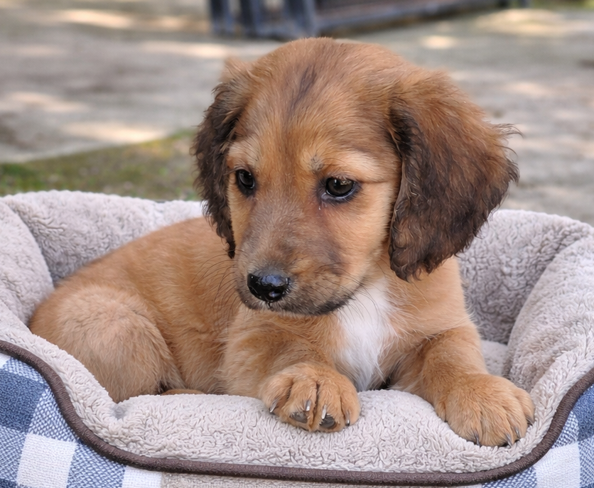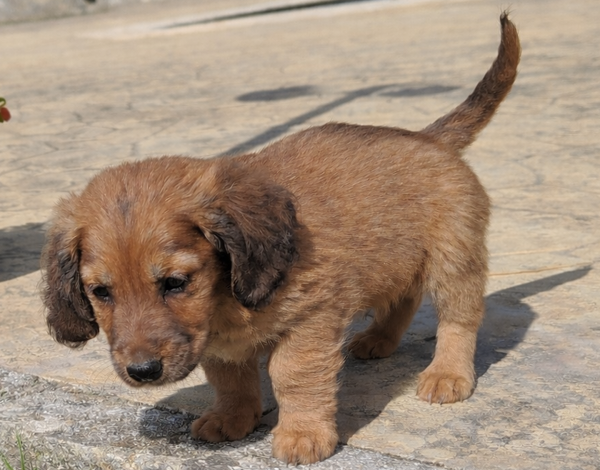 Mojo heeft even als zijn nestgenootjes korte pootjes en een lang lijf.
